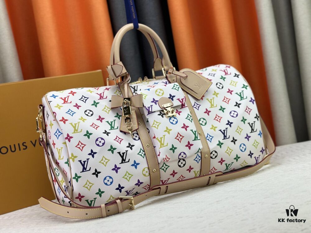 M13742 Multicolor White and Black Travel Bag, LV x TM KEEPALL BANDOULIÈRE 45, New Arrival