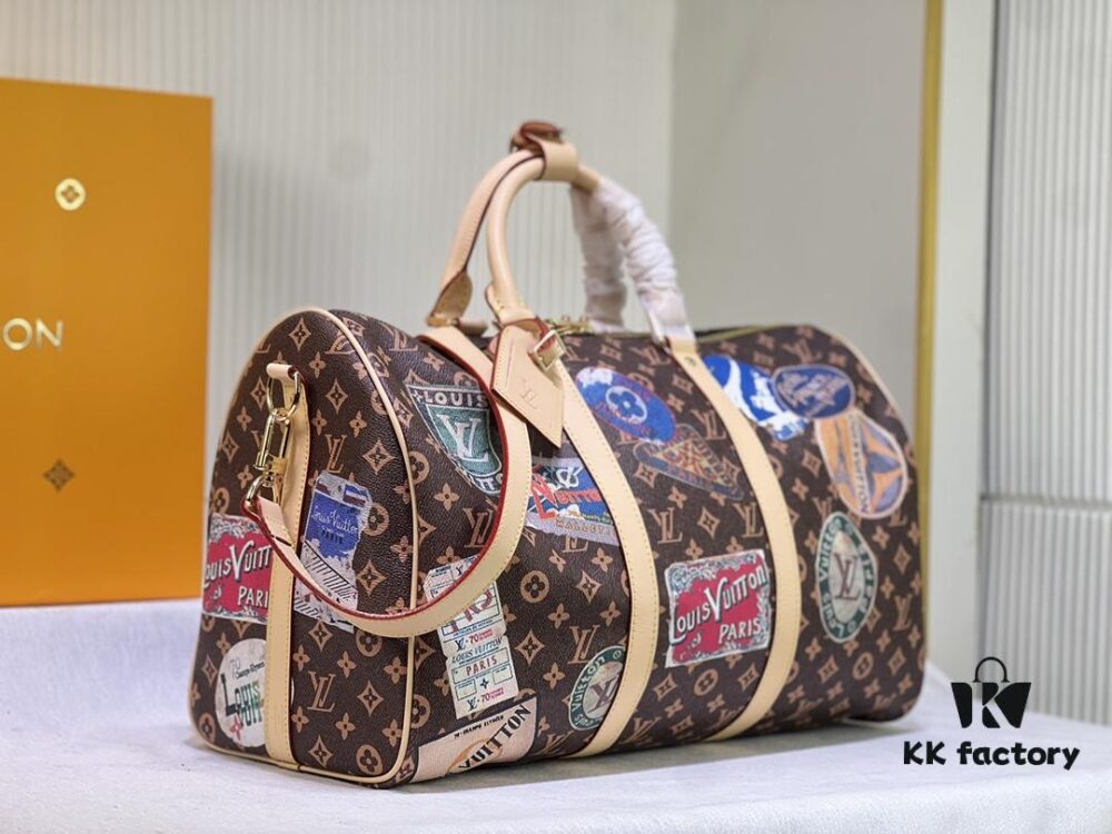 Color-changing Yellow Skin 👍 M24960 M41416 This Keepall Bandoulière 45 Travel Bag Features Monogram Canvas with Cowhide Leather Trims and Louis Vuitton Travel Stickers Exuding a Vintage Charm