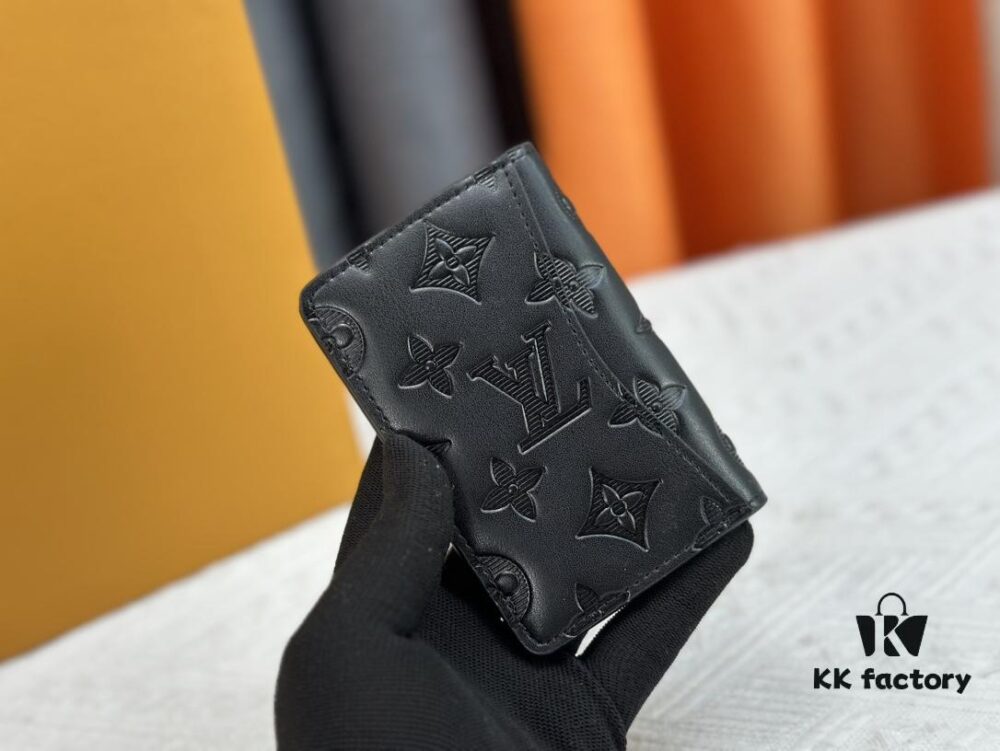 M62899 Wallet: This compact wallet reinterprets the classic design with Monogram Shadow leather. Soft cowhide is embossed with Louis Vuitton’s iconic Monogram pattern, while interior compartments and card slots provide organized storage for everyday essentials.