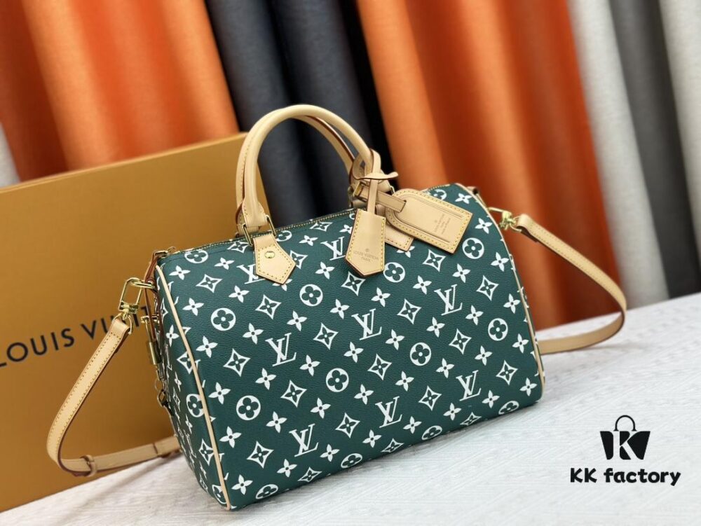 New LV 2024 Spring/Summer Non-Dong Design Speedy Security Lock, Polished Heavy Carving, Metal Luggage Tag, Key Pouch with Dove Engraving, Italian Imported Color-Changing Calfskin Trim, Adjustable Shoulder Strap Lock