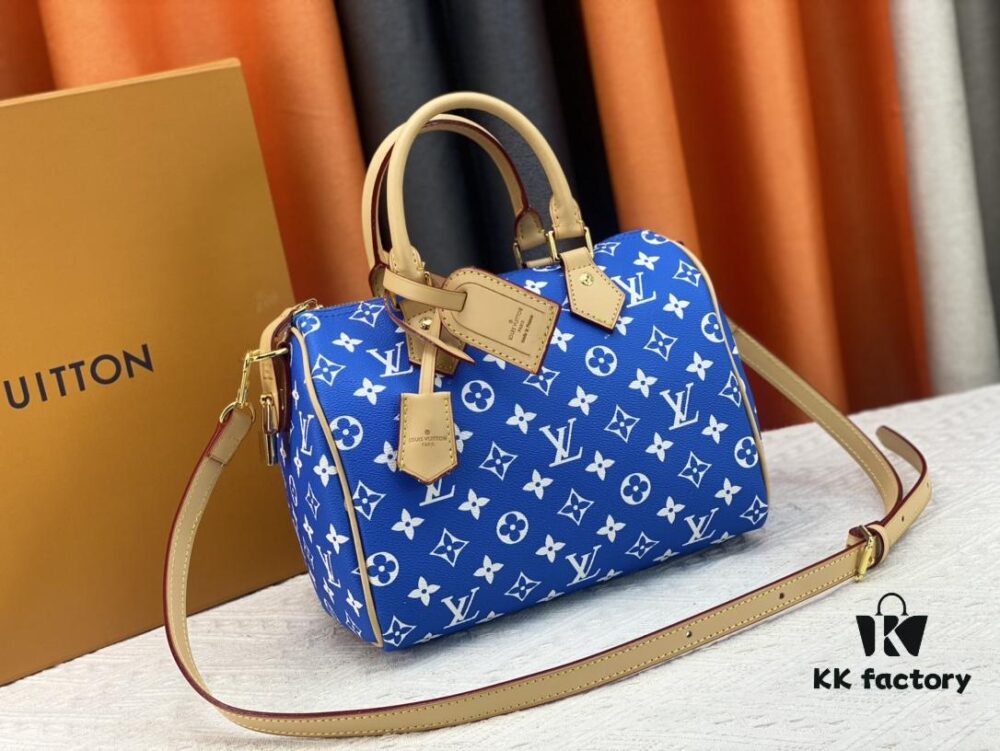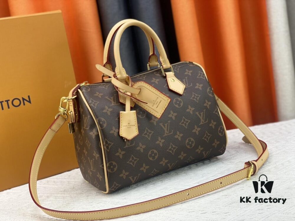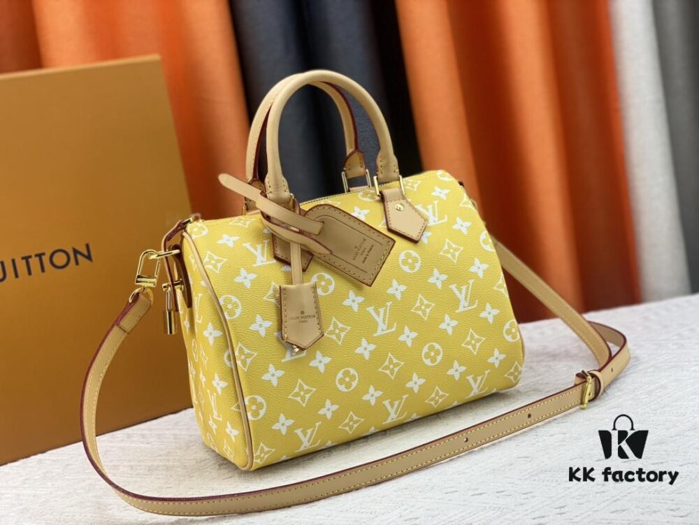 New LV 2024 Spring/Summer Non-Dong Design Speedy Safety Lock, Polished Heavy Engraving, Metal Luggage Tag, Key Fob with Dove Imprint, Italian Imported Color-Changing Calfskin Trim, Adjustable Shoulder Strap
