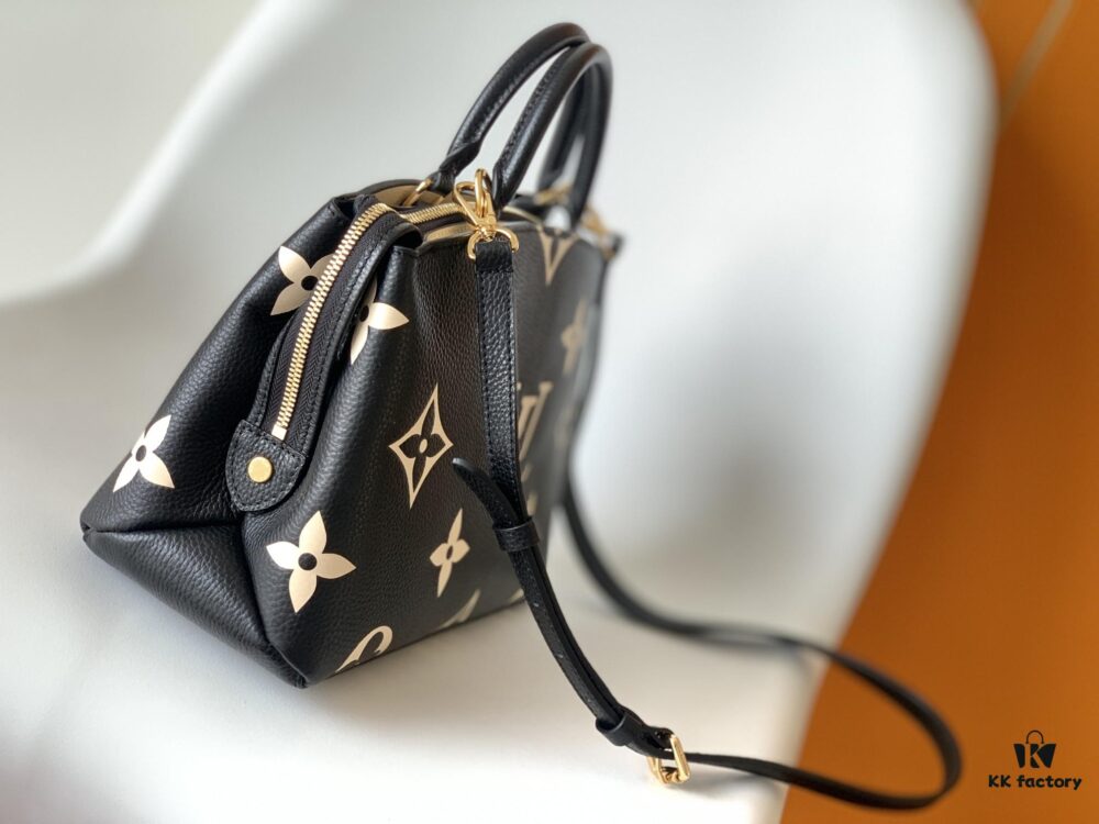 Petit Palais Handbag in Grained Leather with Monogram Flower and LV Initials