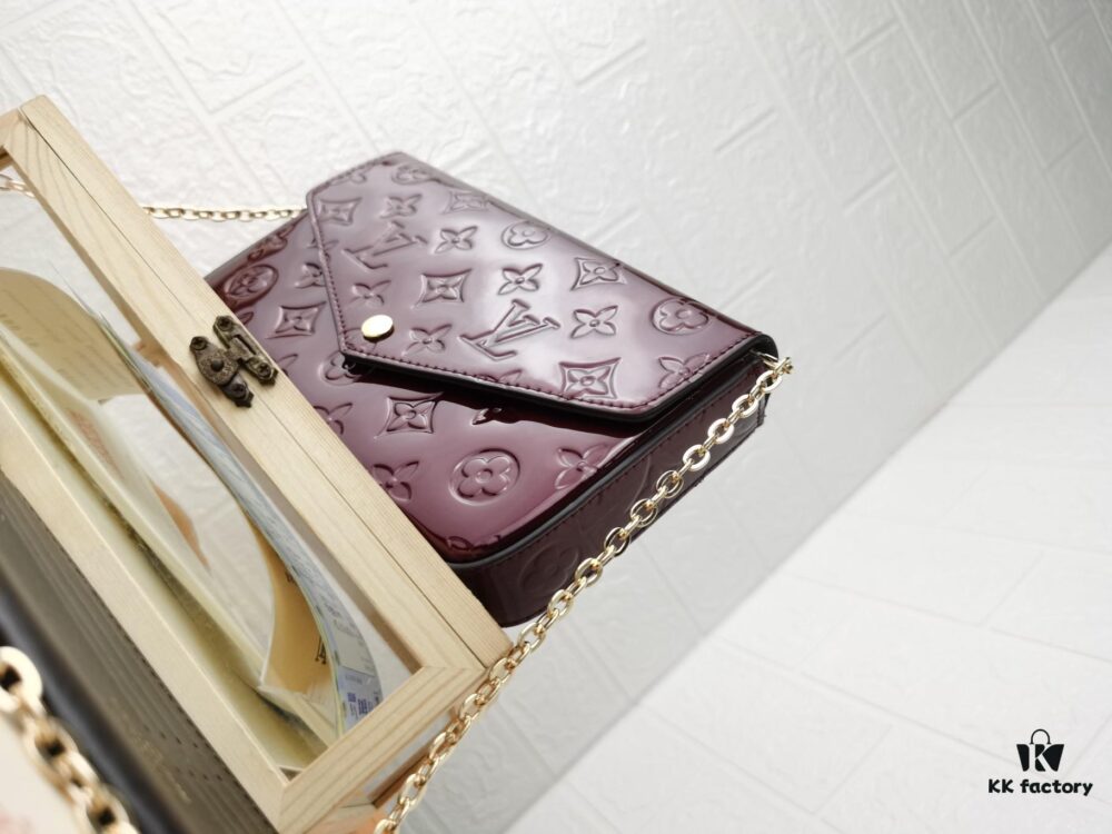 Replica High-Quality Full Steel Hardware Embossed Patent Leather Louis Vuitton Felicie Handbag