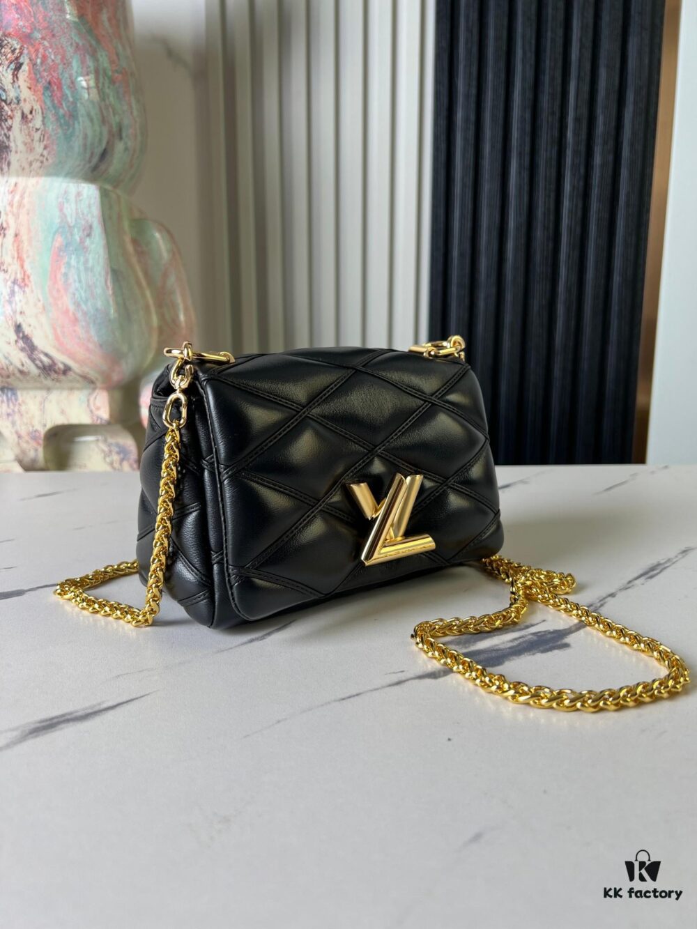 Top Quality Original Order Exclusive Real Shot M23682 M22891 Dark Blue Full Leather Quilted Chain Bag Series GO-14 Teist Medium Handbag M22890
