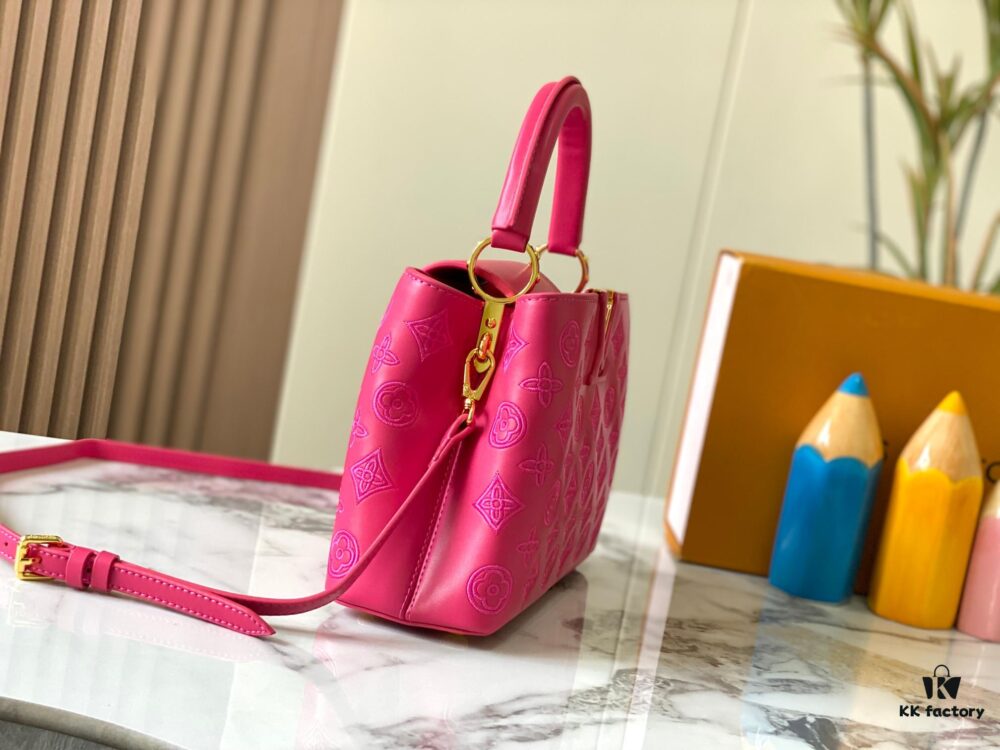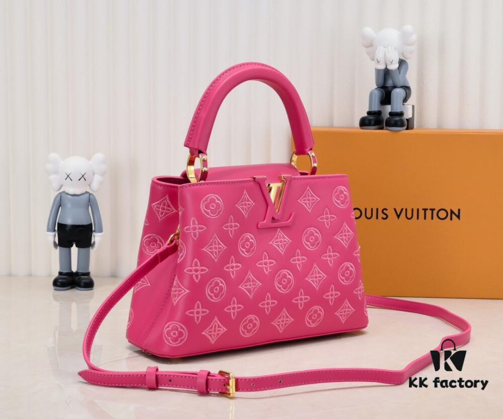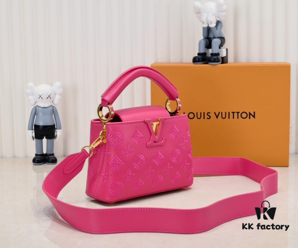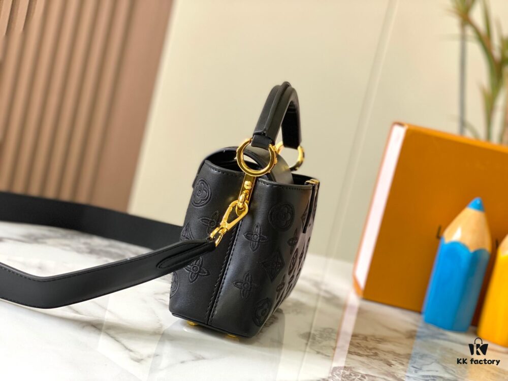 Upgraded M20742 LV Broderie Anglaise Embroidered Gold Button Capucines BB Bag
