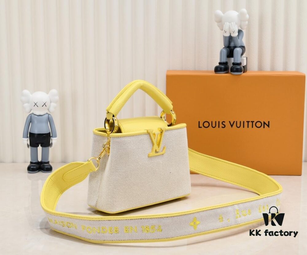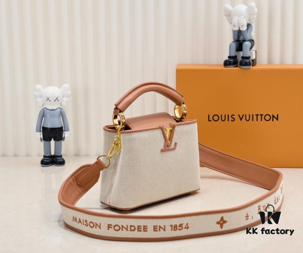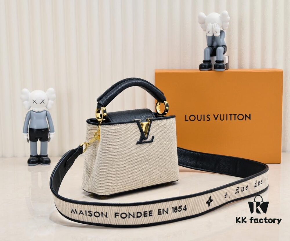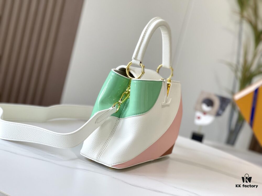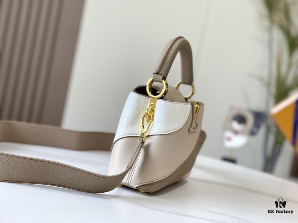 Upgraded M59864 Pure White Three-Tone Gold-Plated Capucines BB Handbag