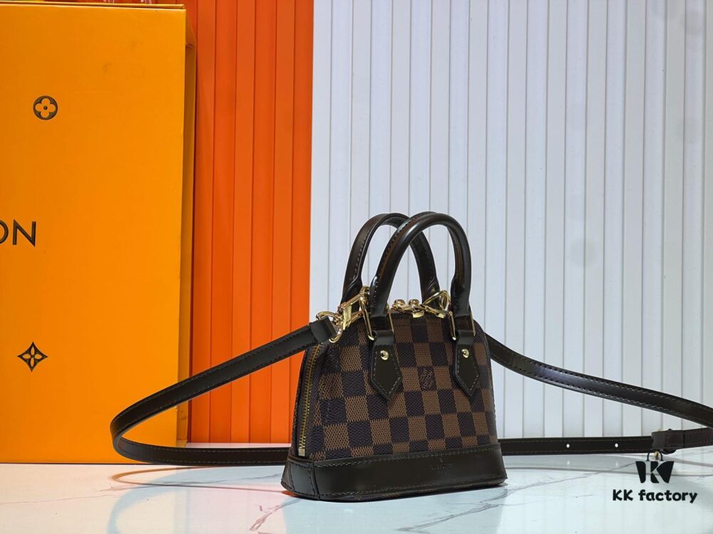 Upgraded Original 【Louis Vuitton Alma Nano Shell Handbag】M82717 Monogram Coffee Check Mini Shell Bag Series