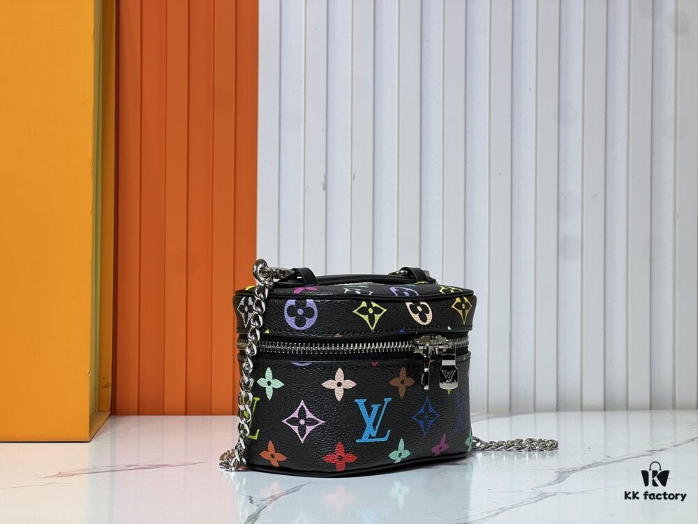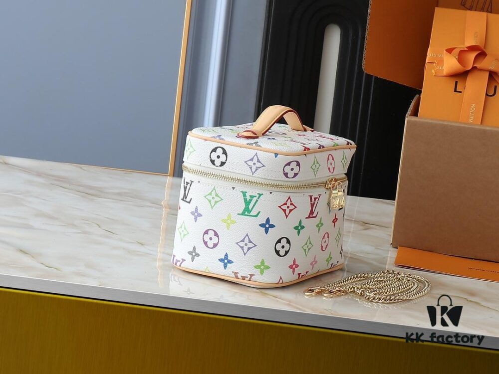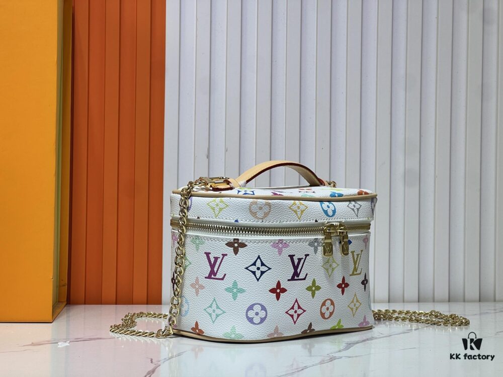 Upgraded Original M13747 M44495 M42265 M44936 M42263 LV Takashi Murakami Nice Mini Nano Cosmetic Pouch Featuring the Monogram Print in 33 Vibrant Colors, 2025 Collaboration of White Tricolor and Black Tricolor Twelve-Section Series by Takashi Murakami and LV, a Global Hit Loved by Celebrities