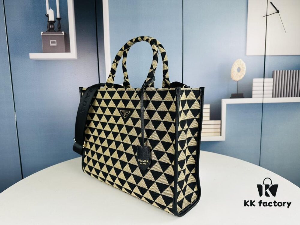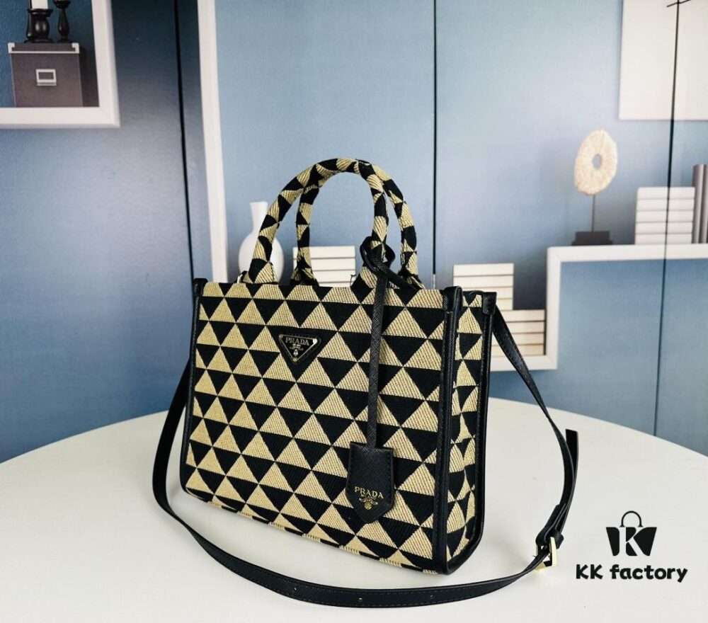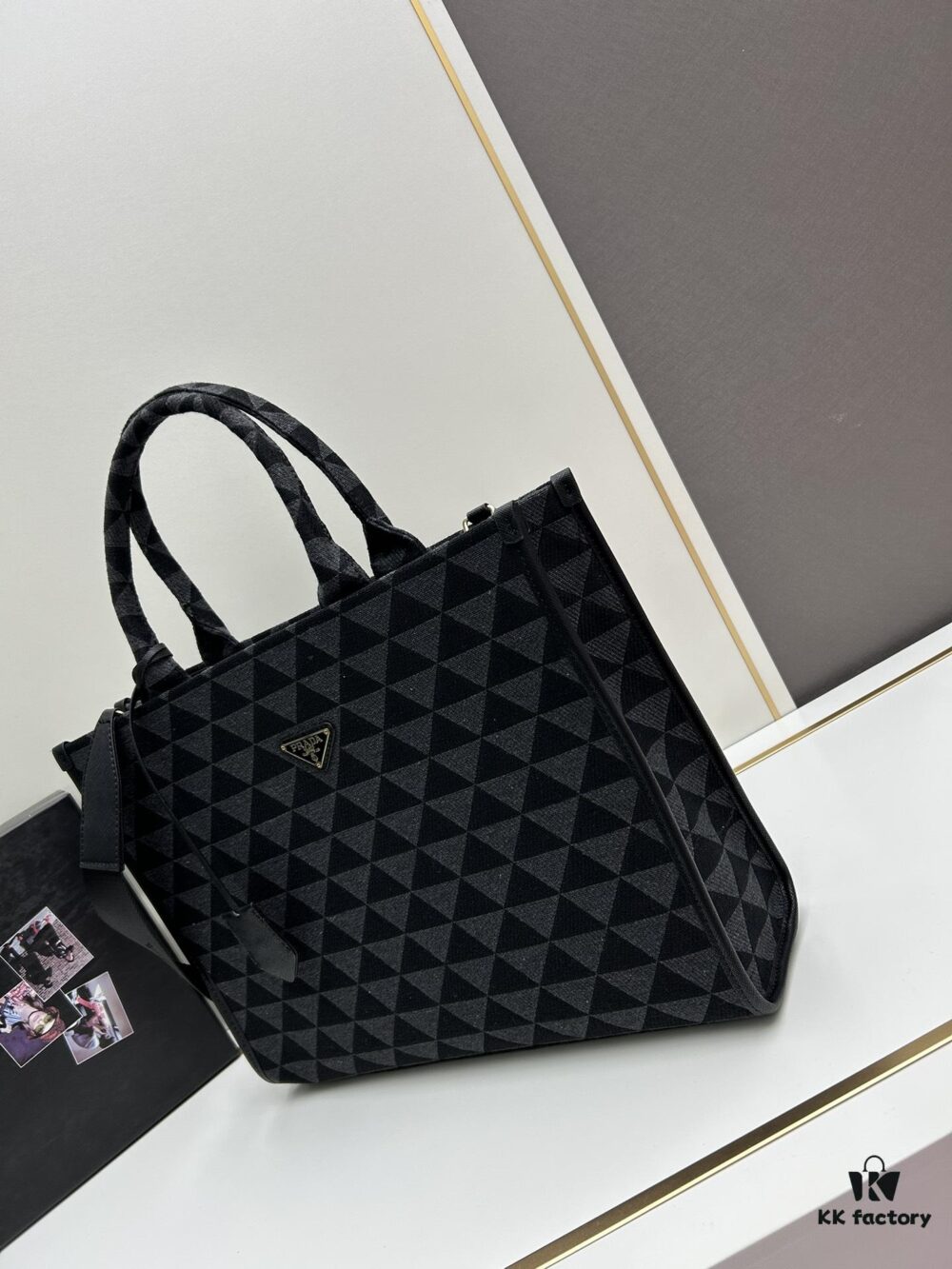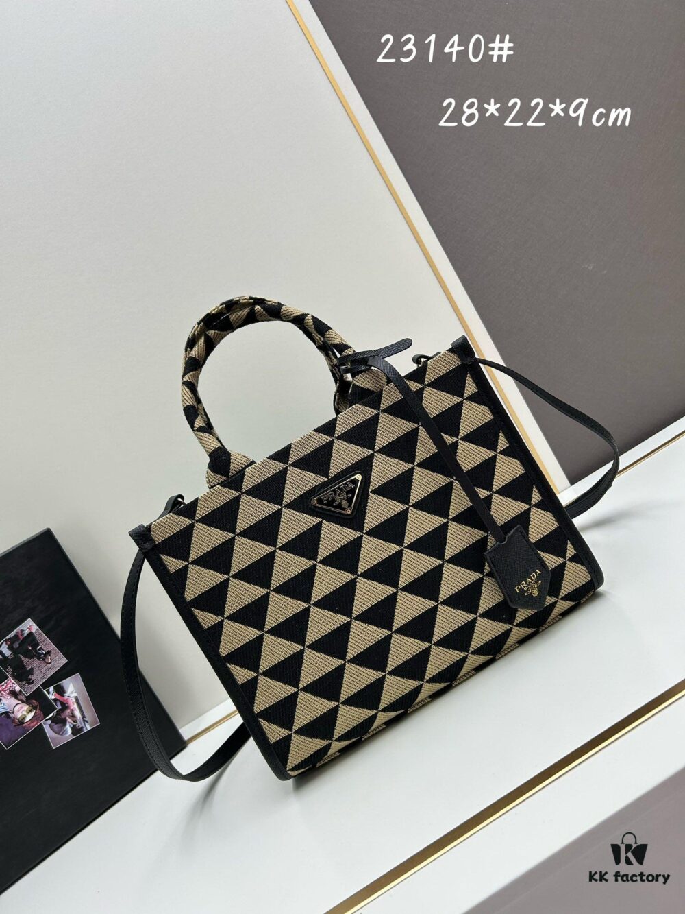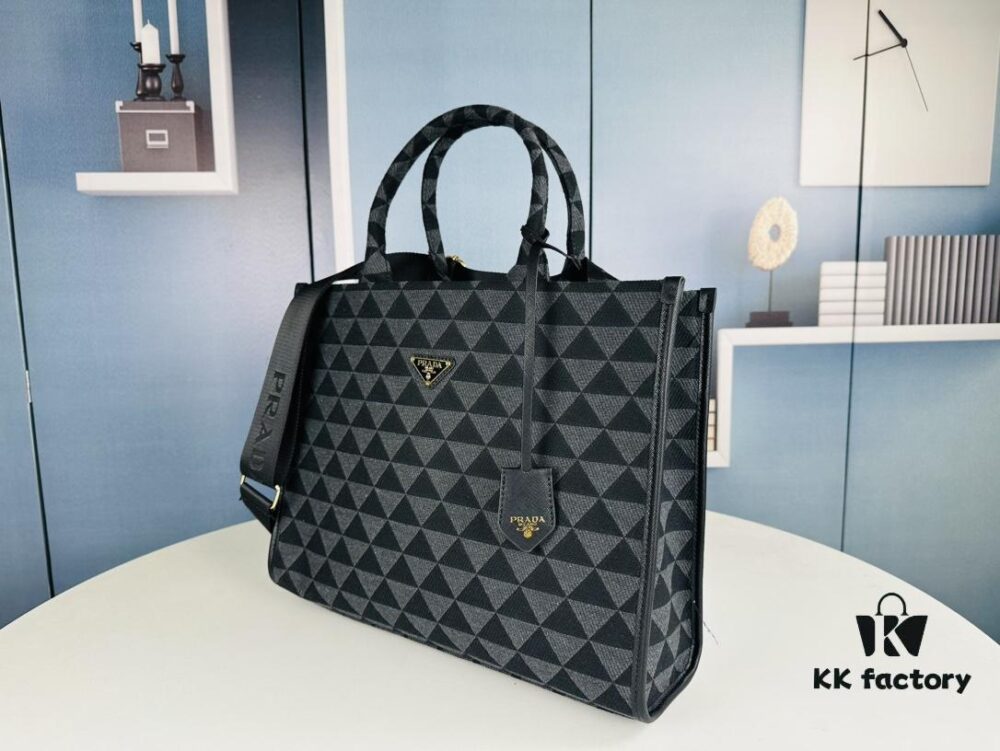 New Large Size Prada Embroidered Fabric Tote Bag (With Long Shoulder Strap)
