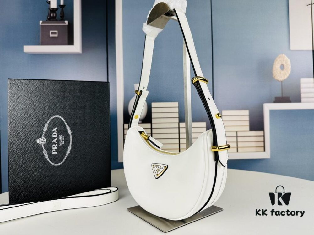 New Prada 1BH913 Moon / Crescent Bag with Box – Calfskin and Pale Gold Tone