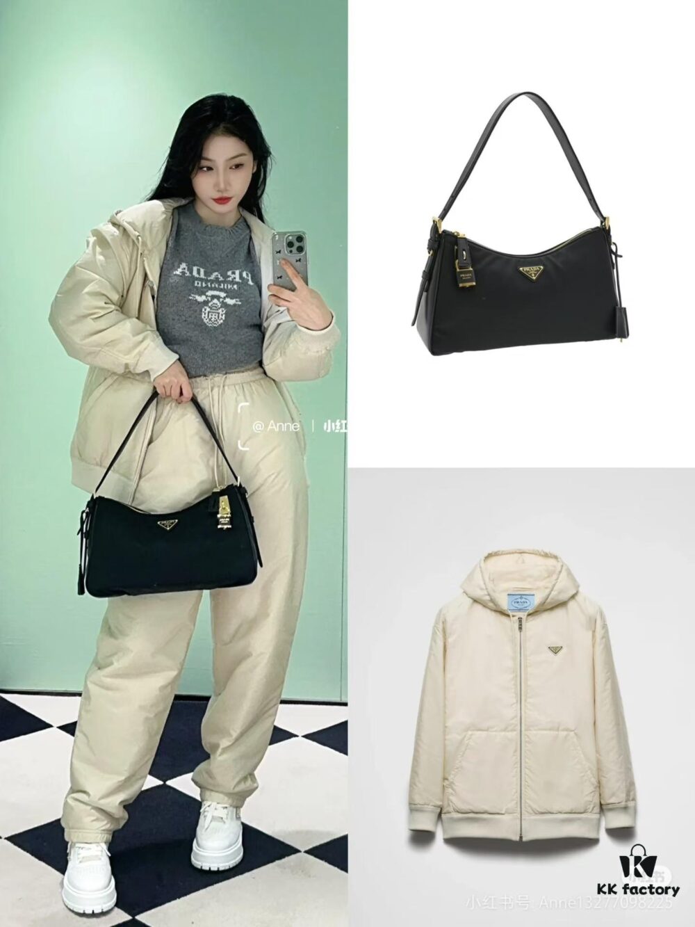 PRADA Counter New Arrival (Full Leather Series) – Original Order Quality with Authentic Hardware, Wrinkled Lacquer Cowhide and Suede Shoulder Bag