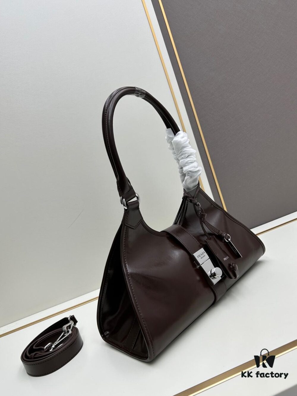 PRADA Counter New Arrival (All-Leather Series) Original Order Quality with Matching Hardware Full-Grain Oil-Waxed Calfskin Shoulder Bag