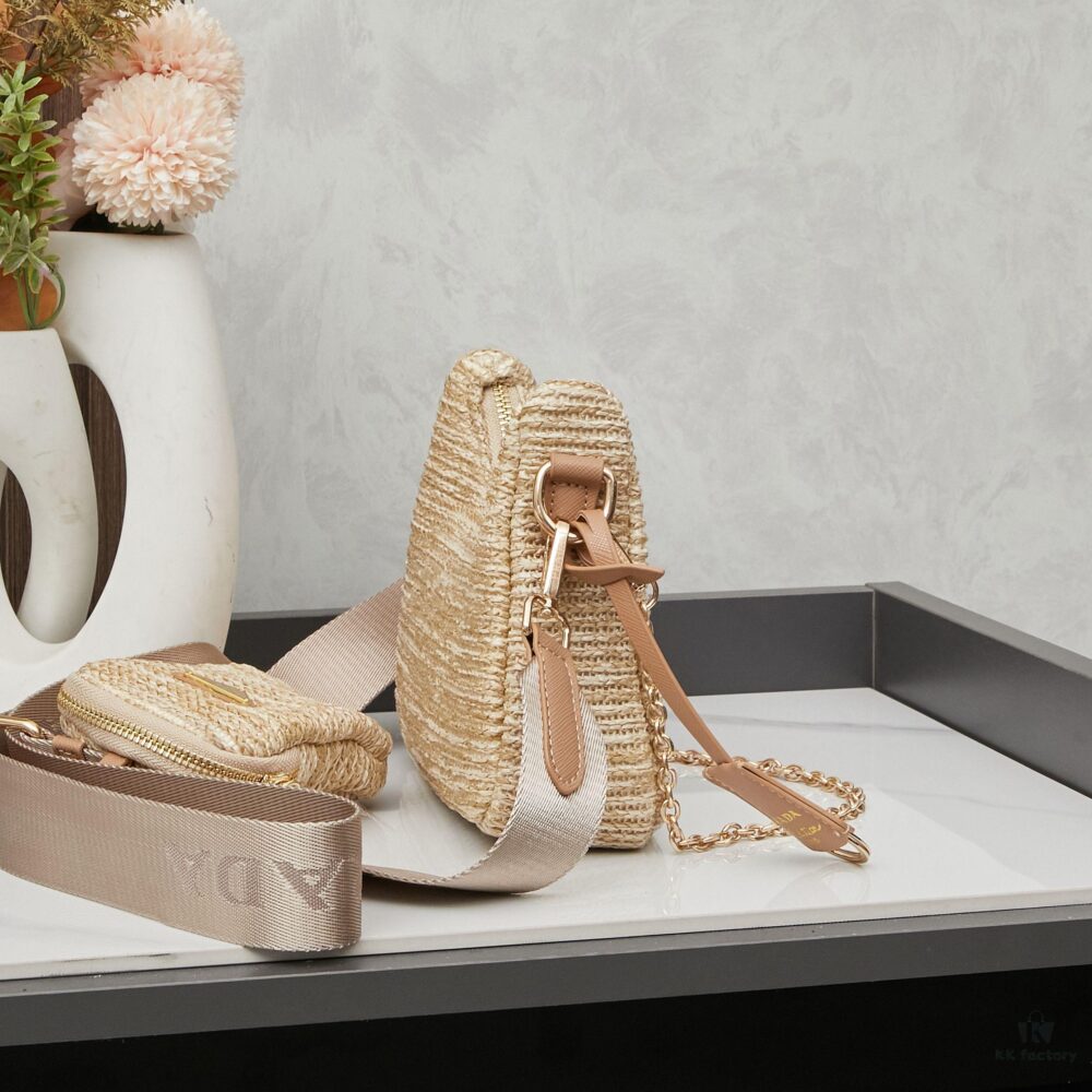 Prada Hobo Combo Raffia Woven Limited Edition Mini Bag 2429