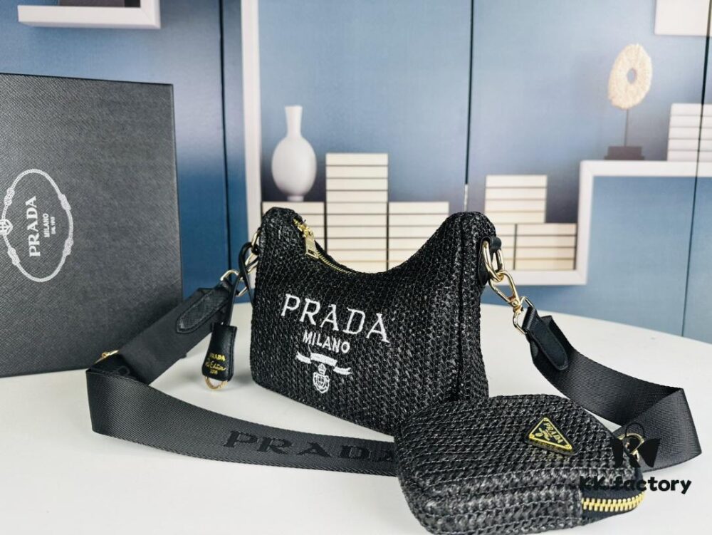 Beige Knitted Prada Three-in-One Bag 🎀 Adorable Design with Box