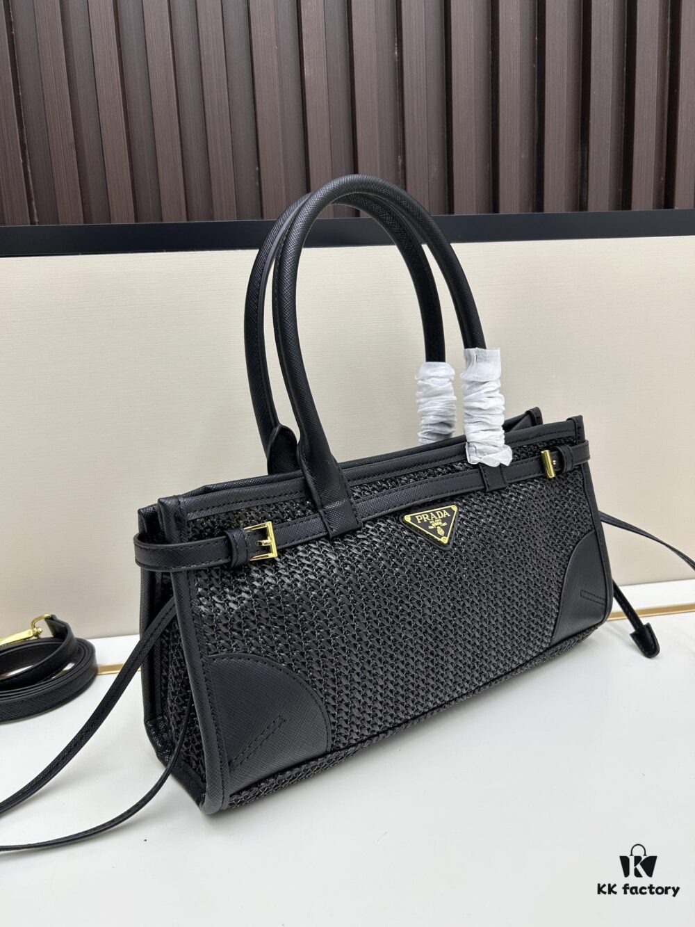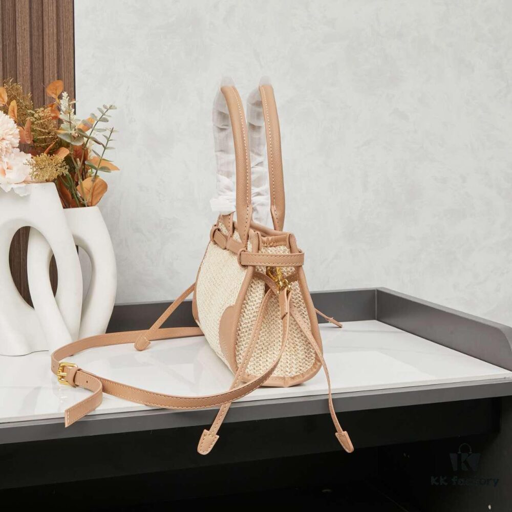 PRADA Summer It Bag – Woven Rattan Tote with Leather Trim, 32✕15✕11 cm