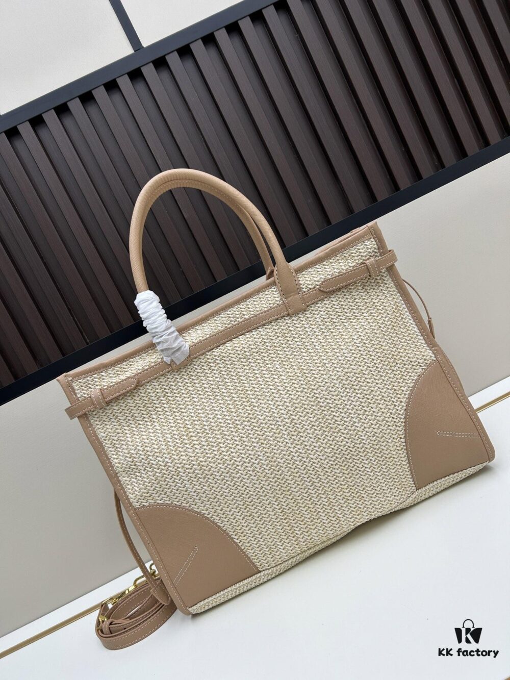 PRADA Summer It Bag – Woven Straw Tote with Italian Vegetable-Tanned Leather Trim, Size 38×30×12