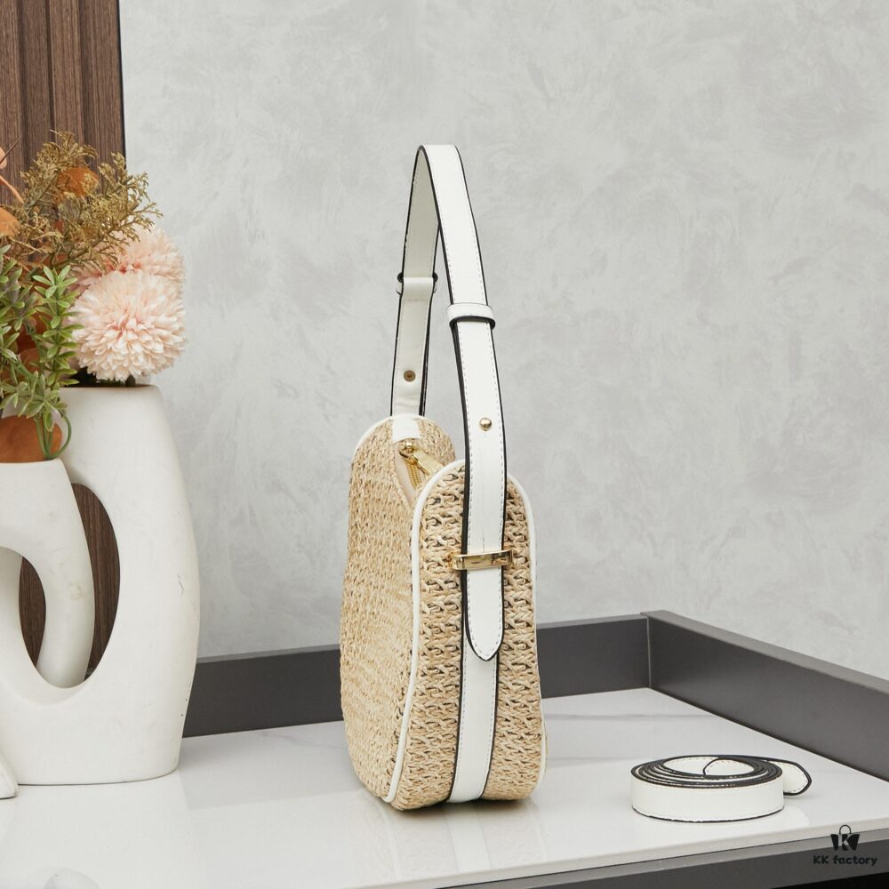 Prada Woven Straw Letter Bag in Black, Beige, Pink, Blue – Vacation Style Cute Handheld Bag with Triangular Logo