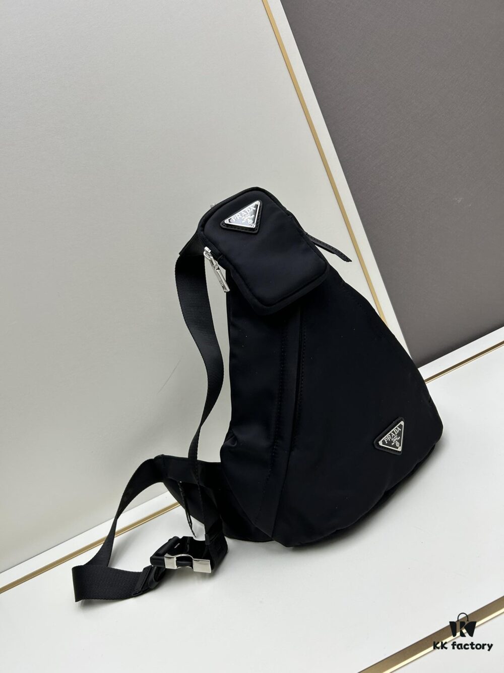 PRADA! 100% Authentic! Latest Model Chest Bag, Shoulder Bag! Imported parachute waterproof fabric, genuine Lamborghini zipper, pure brushed metal hardware, two front zippered pockets, lined with imported velvet filling for a soft, elastic touch that’s neither stiff nor rigid — absolutely amazing!