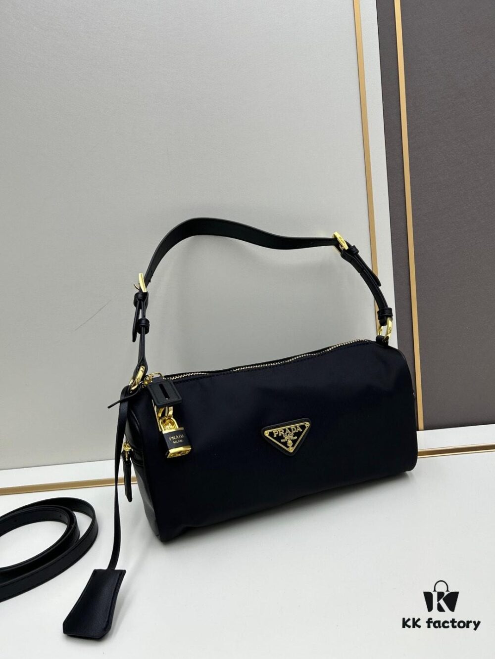 With Box, PRADA Prada 2024 Fall/Winter Black Padlock Shoulder Bag