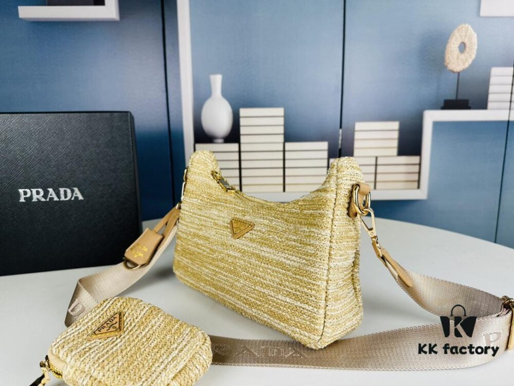 Large Size Prada Hobo Combo Raffia Woven Limited Edition Three-in-One Beach Bag with Box