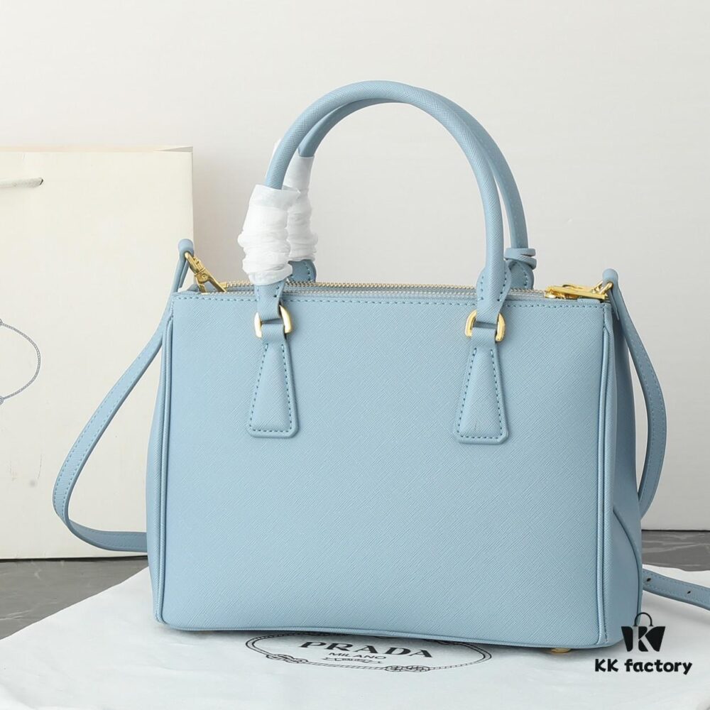 Model 1018 Home Super Hot Killer Bag, Saffiano Leather with Dual Top Handles, Detachable Adjustable Leather Shoulder Strap, Gold-Plated Hardware, Metal Logo Lettering on Triangular Leather Patch, Snap Button Closure on Side, Two Exterior Zip Pockets, Three Interior Pockets Including One Zip Pocket, Prada-Branded Lining