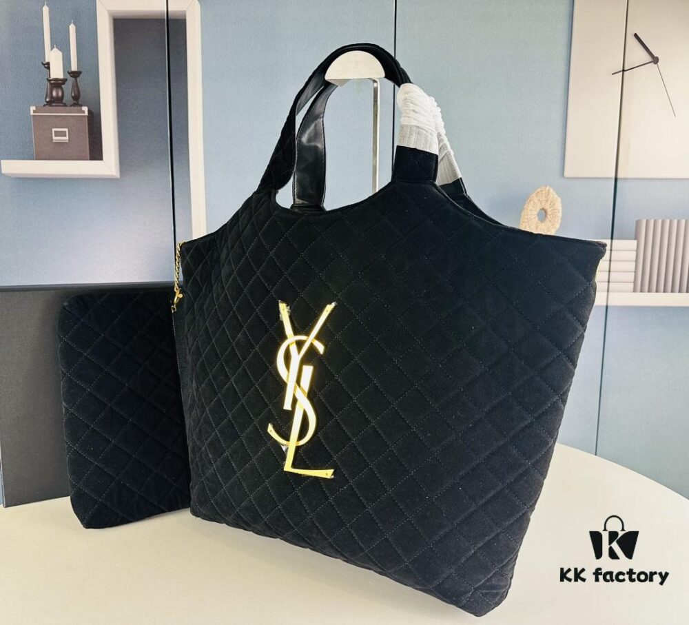 New YSL Icare Suede Quilted Tote Bag in Black and Caramel