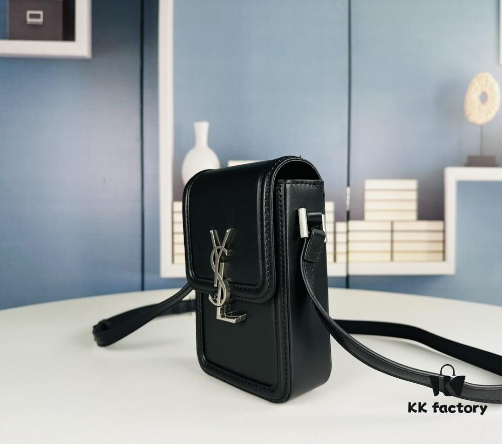 New YSL HOBO Series Mini Vertical Crossbody Bag in Smooth Calfskin with Antique-Tone Metal Logo Closure
