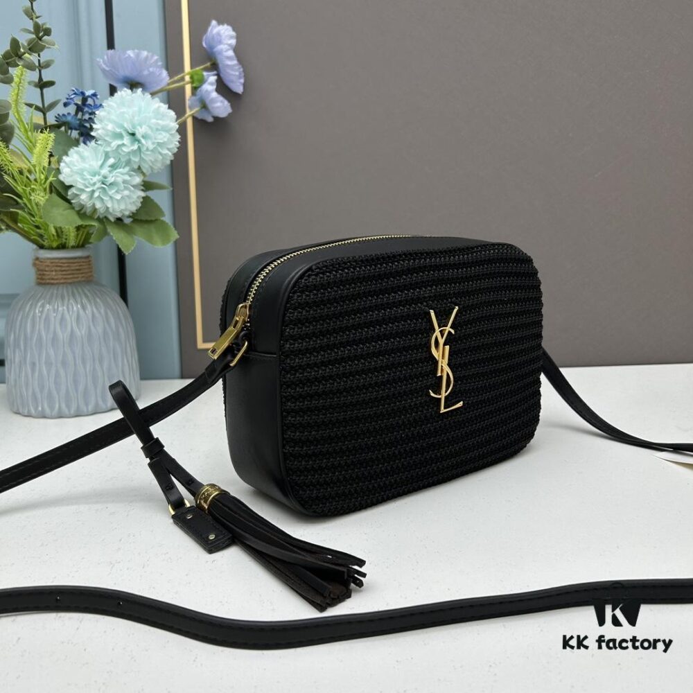 YSL Saint Laurent Calfskin Woven Camera Bag with Box ||| NEW Lou Camera Bag – Black Woven Design with Gold-Tone Hardware, Italian Calfskin