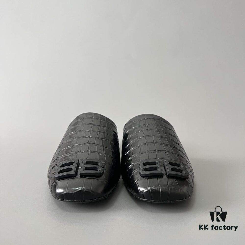 Balenciaga Crocodile-Textured Leather Flat Slip-On Fashion Sandals in Black