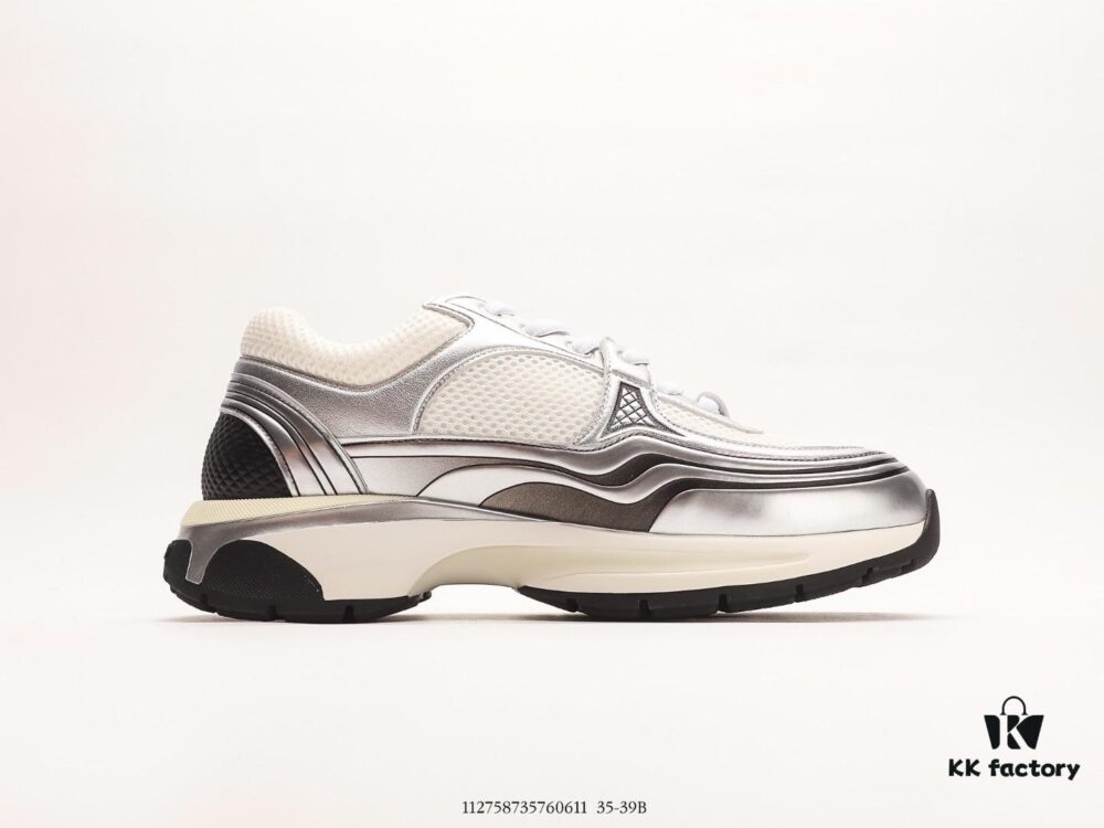 Chanel 2023 Logo Sneakers, Kruus Lightweight Retro Dad Shoes, Futuristic Metallic Style, Original Mold Design with Enhanced Texture and Refined Silhouette