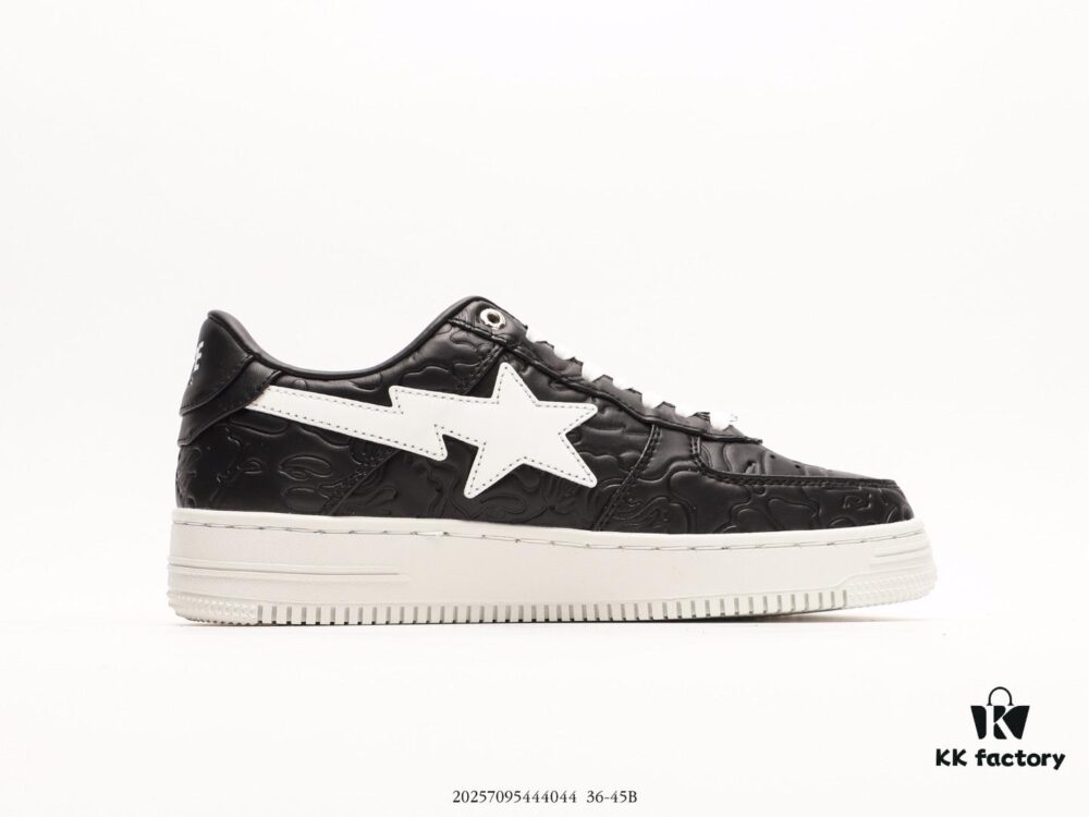 Ape Head Bape Sta Tokyo Embossed Black and White, Trendsetting Nigo Brand, Classic Ape Head Skate Unisex Casual Sports Sneakers, Classic Ape Head Design, Authentic Silhouette, Seaglass Insole, Full-Length Air Cushion Inside, Premium Complete Packaging Including Custom Ape Logo Dust Bag, Ape Logo Card, Shock-Resistant Drawer Shoe Box