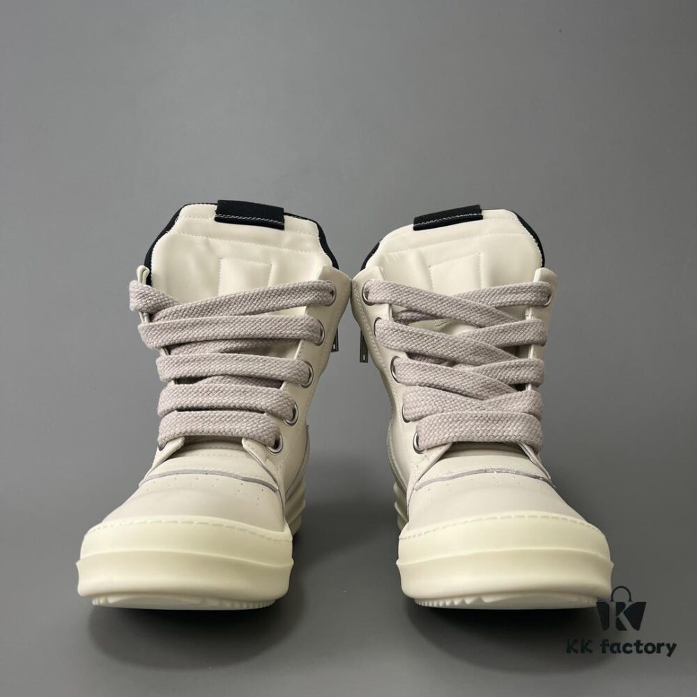 Top-tier Rick Owens Style All-white Leather Low-top Lace-up Shoes