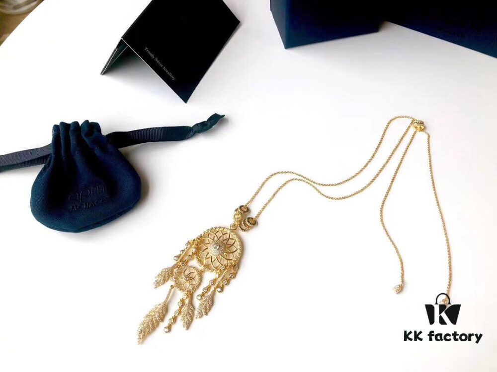 APM Monaco Gold-Tone Silver Crystal Dreamcatcher Vintage Minimalist Fashion Statement Necklace for Women
