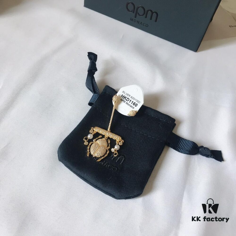 APM Monaco Gold-Tone Scarab Asymmetrical Earrings for Women, Pearl Earrings, Vintage Style Dangle Earrings