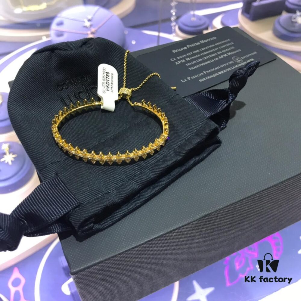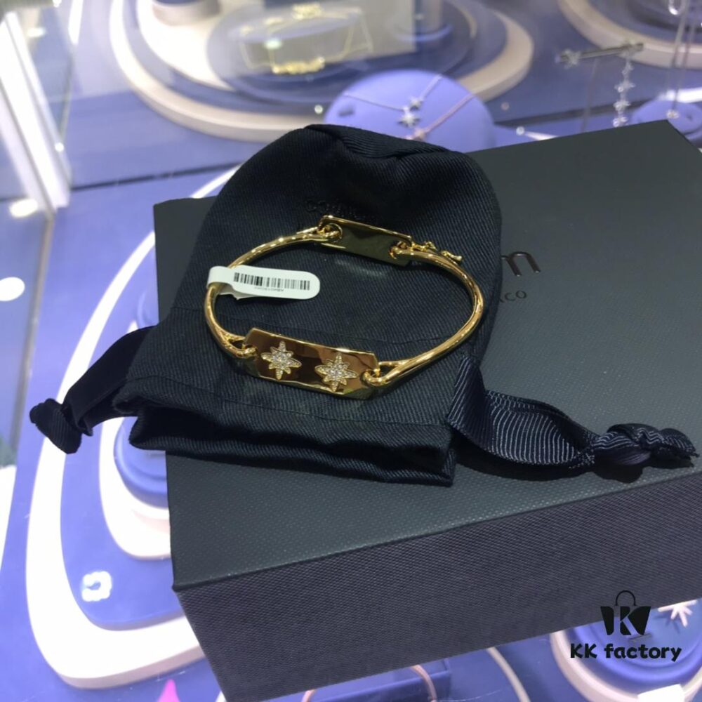 APM Monaco Golden Diamond-Paved Star Bracelet, New Dual Shooting Star Bangle