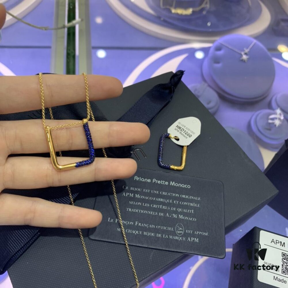 March New Arrival 💕 A Family Monaco Teal Blue Square Geometric Necklace and Single Earring for Women, Elegant Collarbone Pendant, Gift for Girlfriend