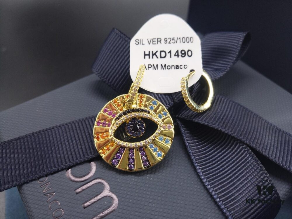 A Monaco Asymmetrical Colorful Gold Lucky Eye Earrings, French Minimalist Luxury Jewelry