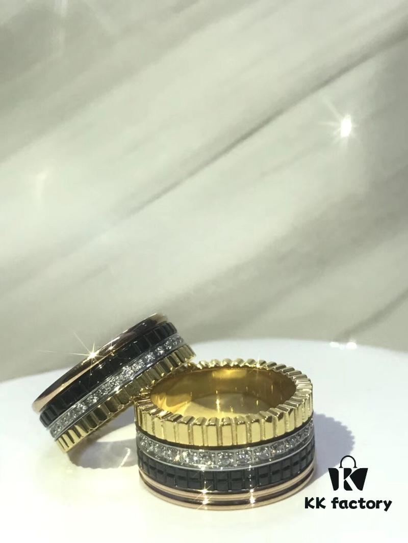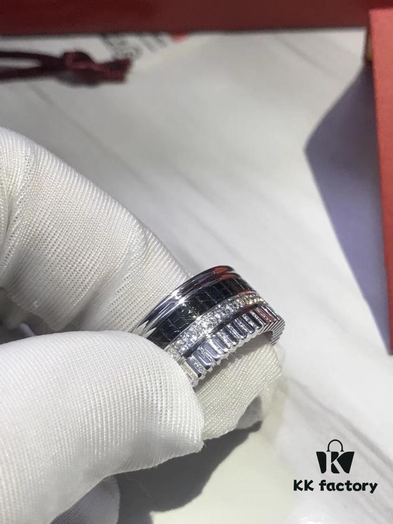 👑[Top-Tier Replica] Boucheron Quatre Radiant Series Rotating Ring – Exquisitely Crafted with 925 Sterling Silver, Paved with Brilliant Cubic Zirconia, Featuring Ribbon-Line Engraving, Black Ceramic Diamond Pattern, and Geometric Elegance