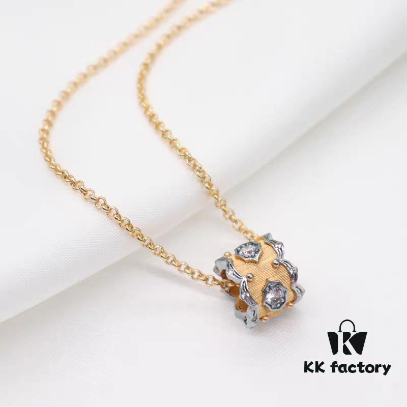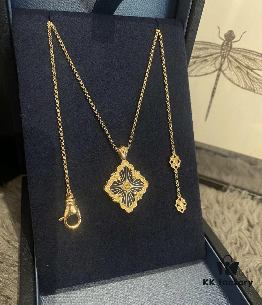 Buccellati Italian Luxury Jewelry Vintage Royal Style Diamond-Cut Clover Double-Sided Necklace V Gold Material 18K Thick Gold Plating Original Chain End Original Clasp High Quality