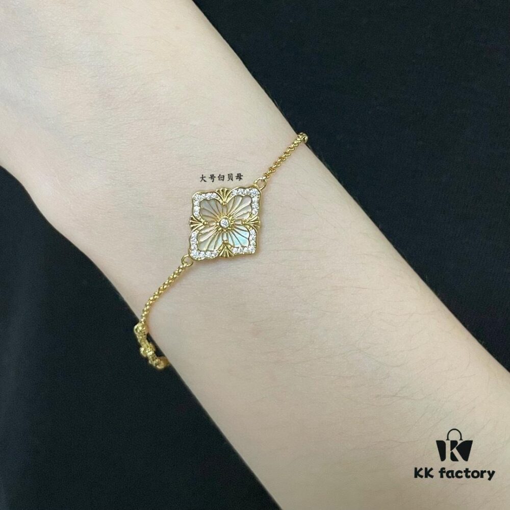 Buccellati Large Opera Series White Mother-of-Pearl Bracelet, Vintage Court Style Clover and Four-Petal Flower Double-Sided Necklace