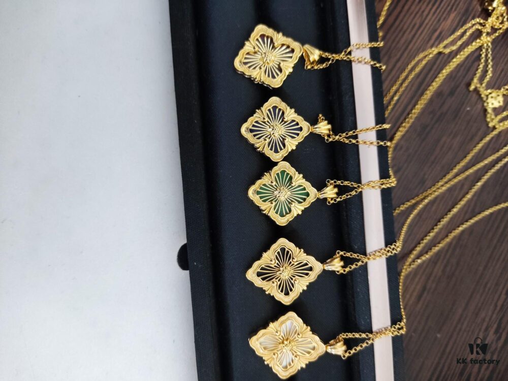 Buccellati Italian Luxury Jewelry Vintage Royal Style Diamond-Cut Clover Shell Agate Chalcedony Double-Sided Necklace V Gold Material 18K Thick Gold Plating Original Chain End Original Clasp High Quality