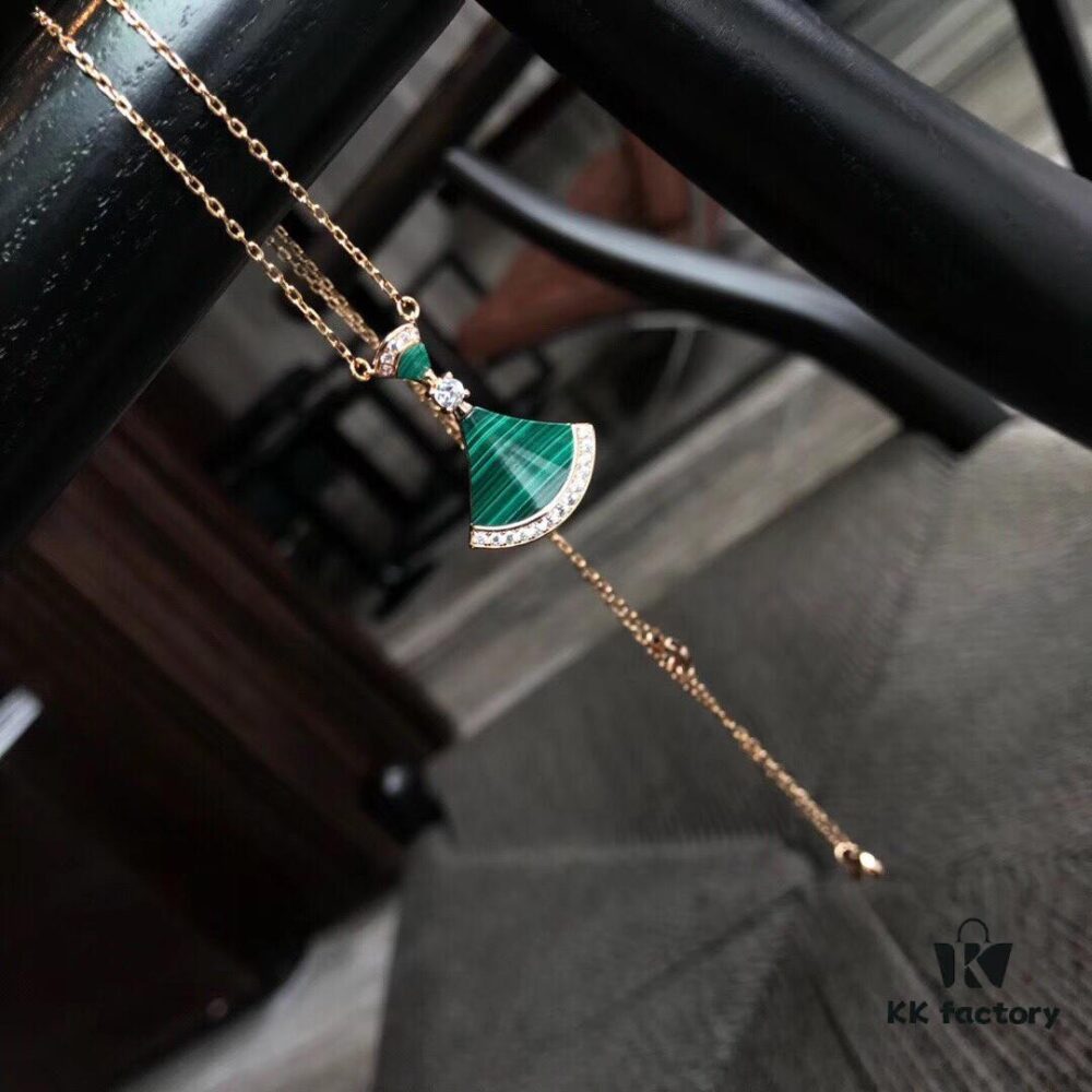 BVLGARI Double Tower Full Diamond Fan-shaped Necklace! ZP Prototype, CNC Craftsmanship! Hand-set, Counter Mark with Perfect Details, Sterling Silver Plated with Micro Gold