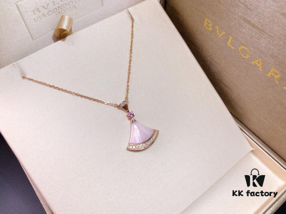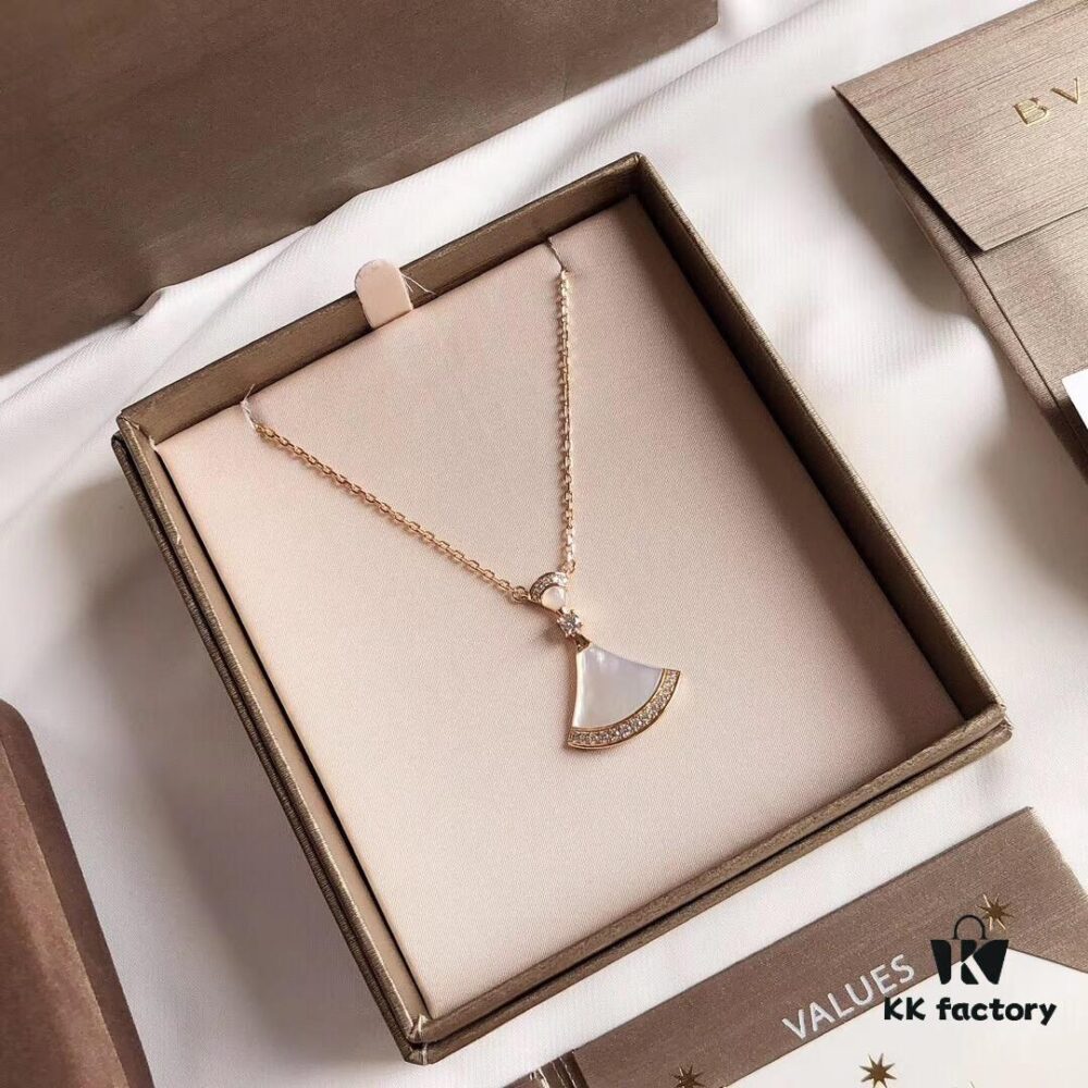 Bvlgari Divas’ Dream Mother-of-Pearl Fan Pendant Necklace, Exquisitely Crafted with Natural Mother-of-Pearl Inlay, Radiant and Elegant, Color Shifts with Light, Showcasing the Unique Luster of Pearls, 45cm Adjustable Chain