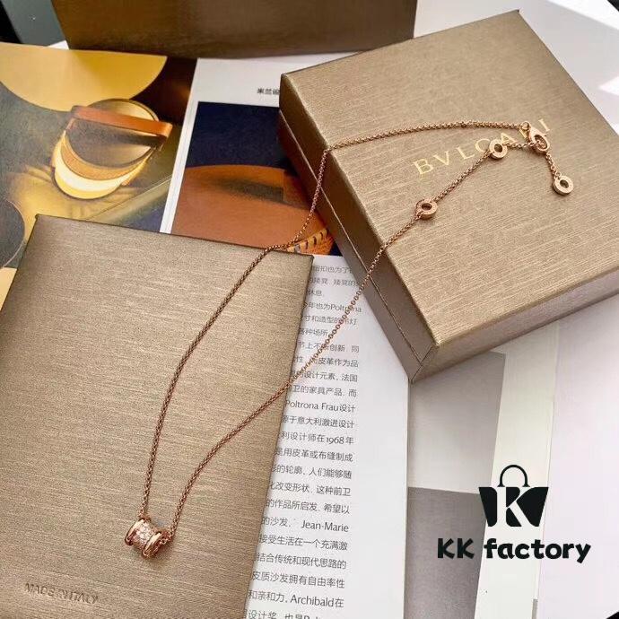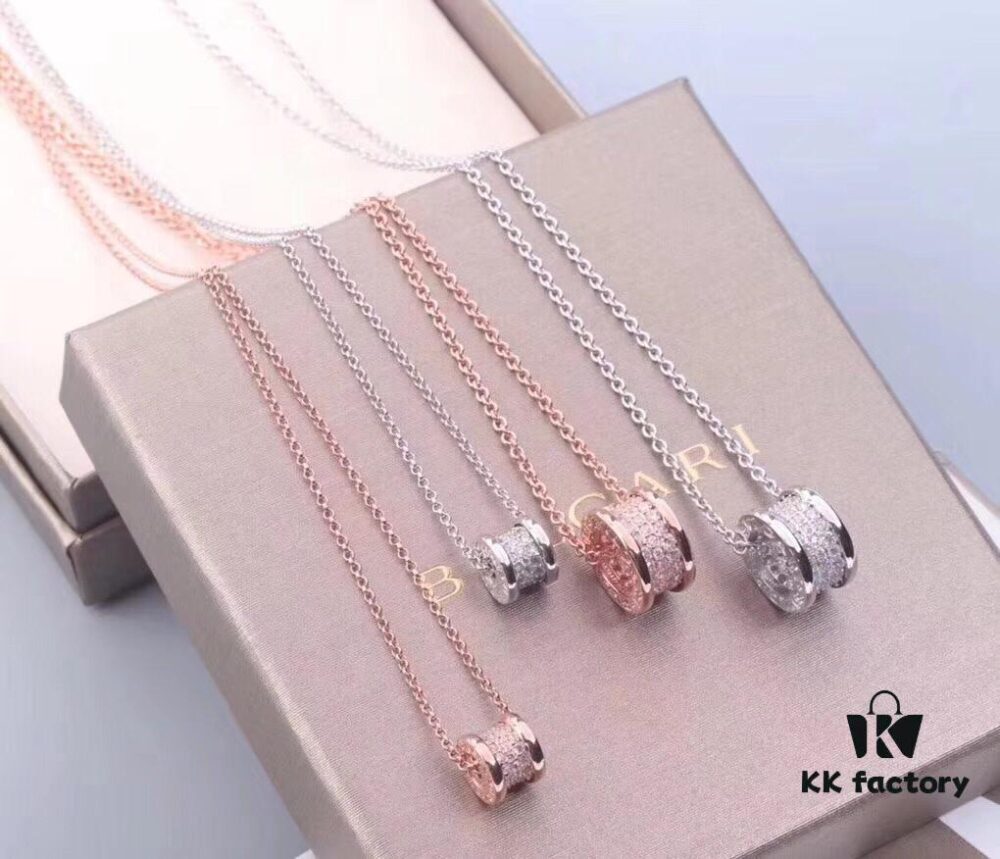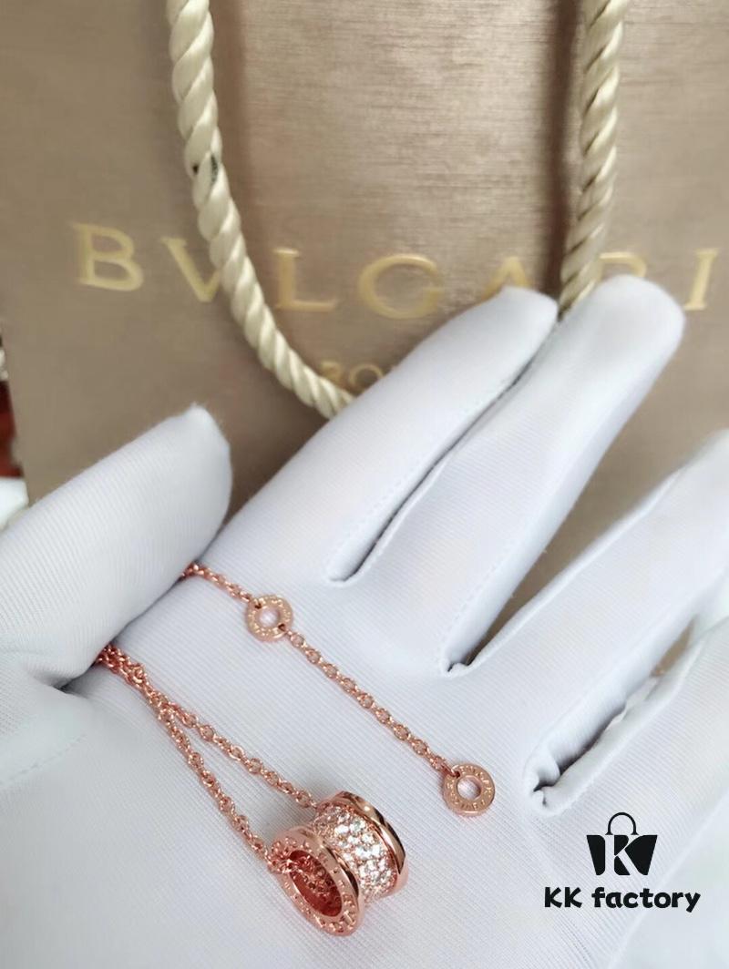 Bvlgari Serpenti Rose Gold Full Diamond Necklace in 925 Sterling Silver with 18K Thick Gold Plating