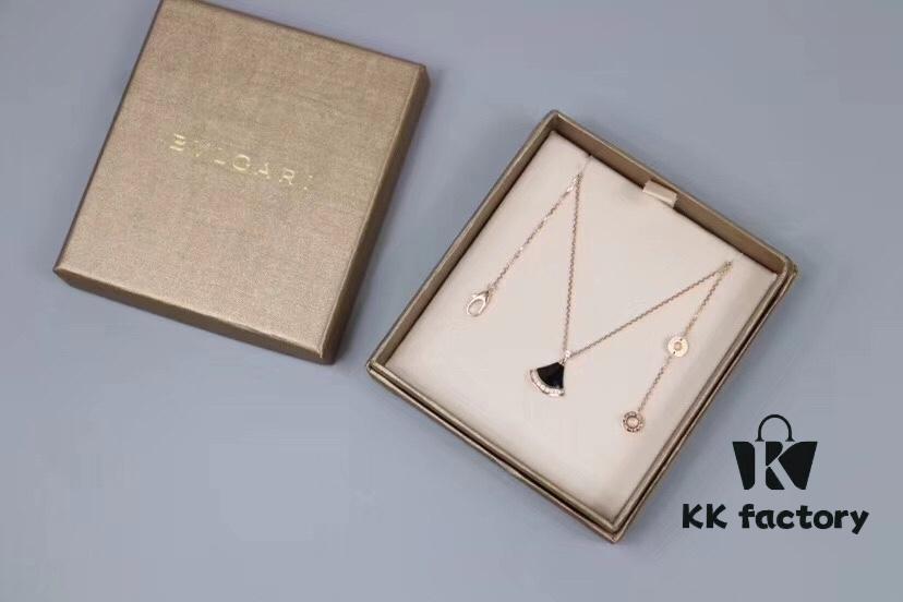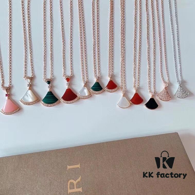 High-End Custom 925 Sterling Silver Fan-Shaped Necklace with White Mother of Pearl, Red Carnelian, and Black Onyx – Diva Series by Baojia, Inspired by Bulgari Design