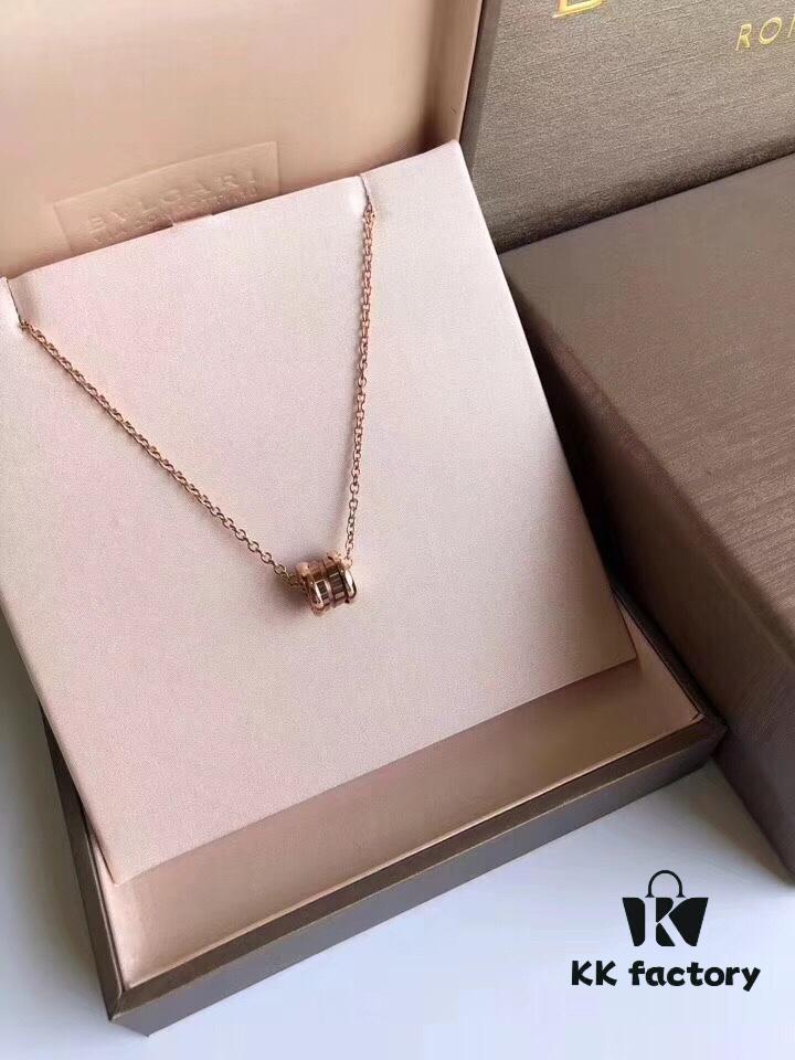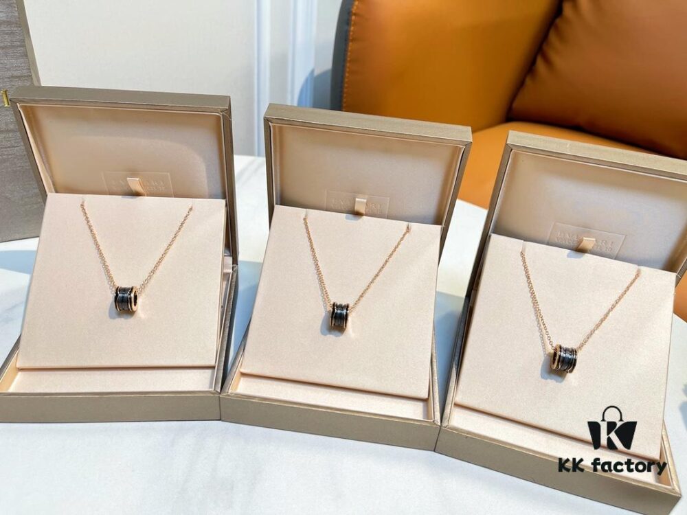 New Two-Tone 925 CNC High-Quality Bulgari Spiral Necklace with Studs and Black Ceramic Edge