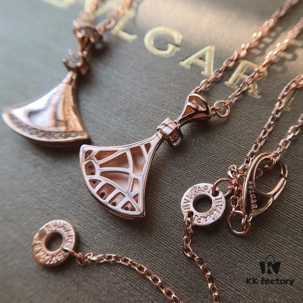 New Bvlgari-inspired Fan Pendant Necklace, Small Size with Natural White Mother-of-Pearl and Diamond Accents, 925 Sterling Silver 18K Gold Plated