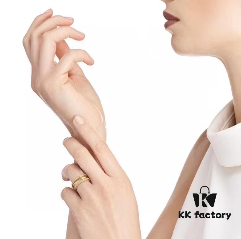 New BVLGARI B.zero1 Rock Series Spring Ring with Rivet Design, Full Diamond Inlay, Unisex Couple Rings