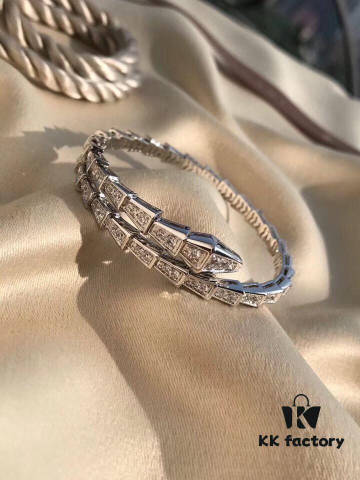 Bulgari Serpenti Viper Full Diamond Snake Bone Bracelet, Crafted in S925 Silver