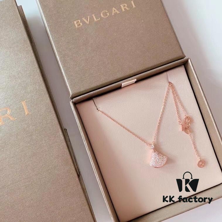 Bv Bulgari Diva Series Fan-shaped Full Diamond Platinum High-end Customized Imported S925 Sterling Silver 5A Super Sparkling Zircon Necklace with Original Bulgari Chain